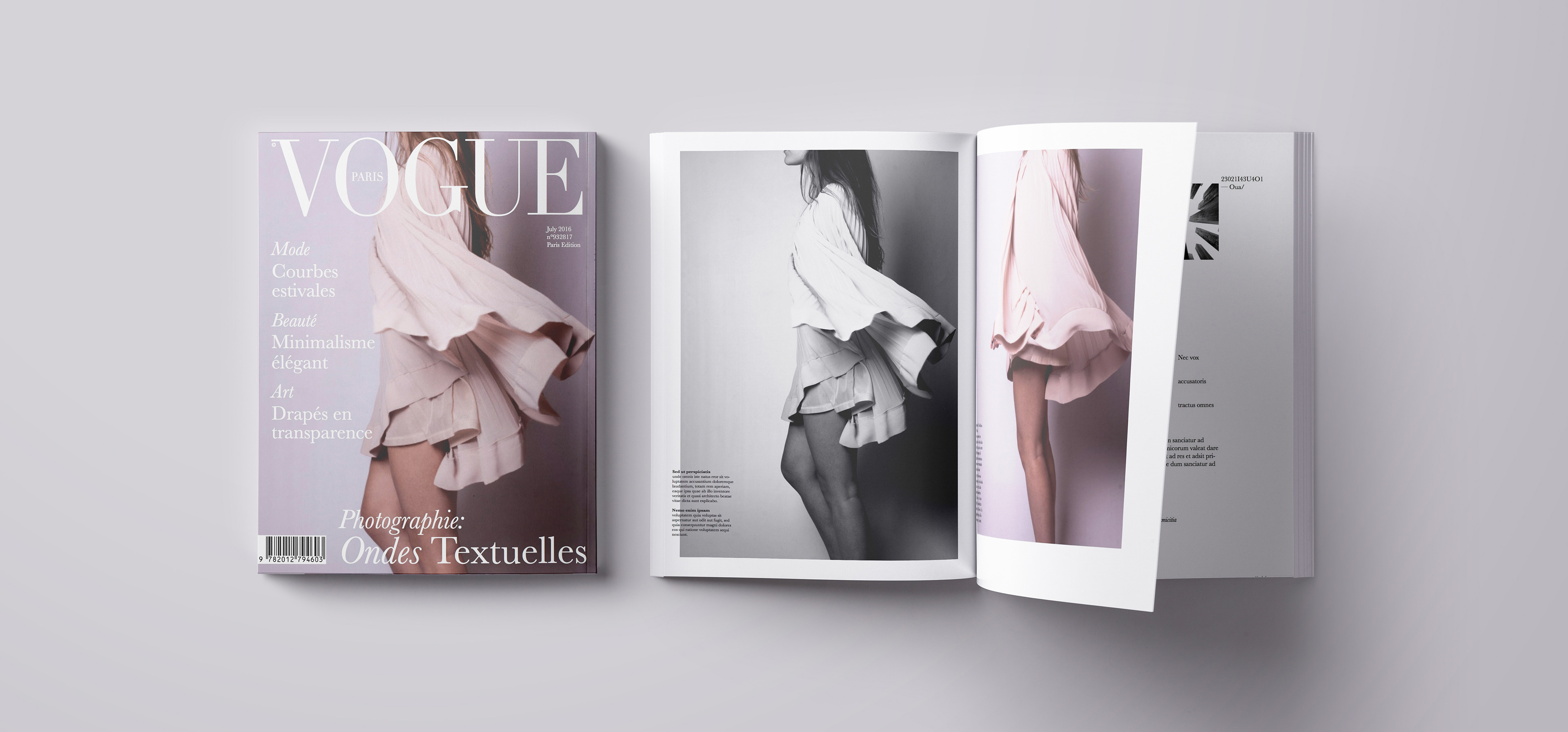 → Ondes textuelles is a magazine made for Vogue with my own photographs, on the subject : “Waves”. I chose to illustrate waves that fabrics can create.
